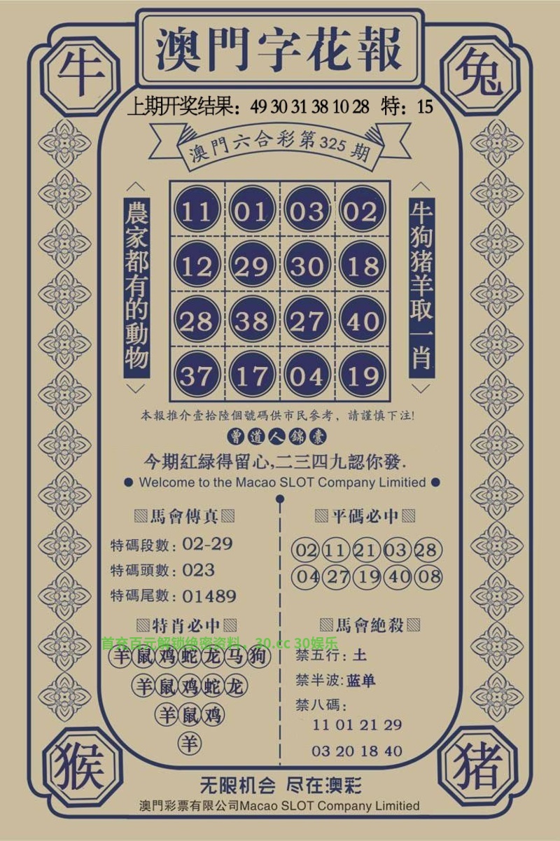 | 325期:❀肉菜草肖❀【吃菜吃草】开:虎04错 |
