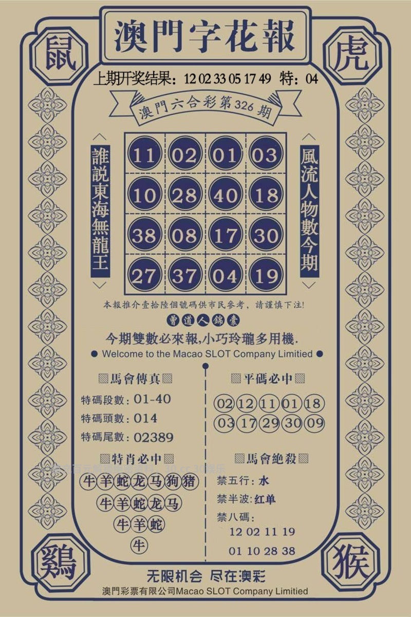 | 326期:前后+两肖[后肖+鼠虎]开:猪19中 |